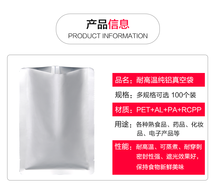 耐高溫水煮殺菌純鋁箔真空袋蒸煮袋